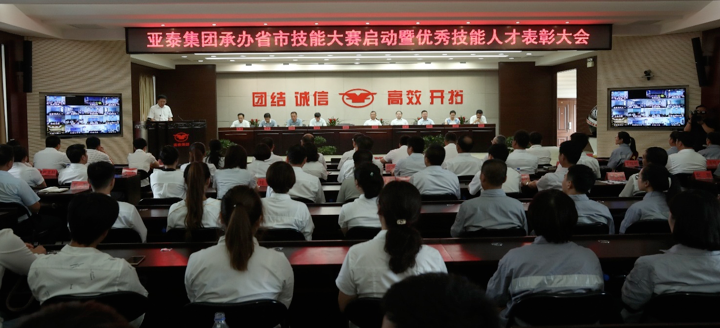 2018年7月4日下午,亚泰集团承办的省市技能大赛启动暨优秀技能人才表彰大会隆重举行。会议设亚泰大厦主会场和35个视频分会场,总计435人参加了此次大会。吉林省人力资源和社会保障厅副厅长姬国海、长春市总工会常务副主席朱琪,以及省人社厅、市总工会的相关领导出席大会。集团公司董事长、总裁宋尚龙出席大会并作主题讲话,集团公司副董事长、党委书记、常务副总裁刘树森及其他高级管理人员在主席台就坐,来自集团公司5个产业的投资公司、所属企业总经理、主管人力资源副总经理及人力资源部经理和各企业优秀技能人才代表参加了大会。大会由集团公司党委副书记、副总裁、工会主席李斌主持。吉林省、长春市广播、电视台、中国吉林网等新闻媒体也对本次大会进行了跟踪报道。