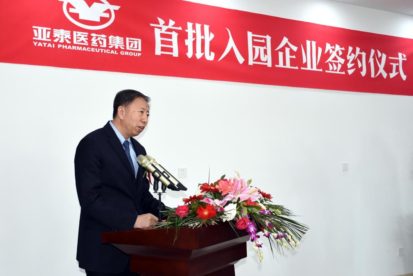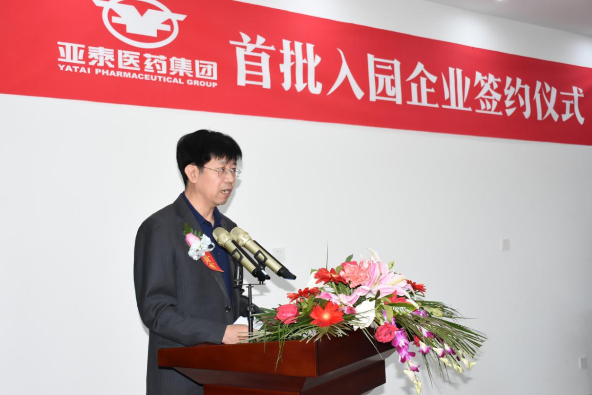刘庶副主任代表北湖科技开发区在签约仪式上致辞,为亚泰国际医药健康产业园整体运营取得突破性进展表示祝贺,肯定了亚泰集团对新区经济发展做出的巨大贡献,同时向拟入园企业表示欢迎,欢迎企业进驻产业园、进驻新区。