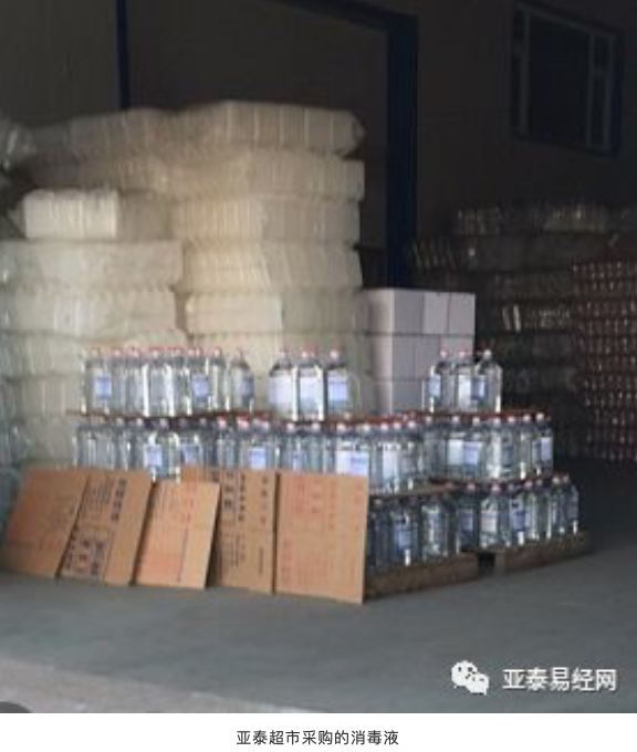 疫情之下,酒精消毒液等防护用品一瓶难求,亚泰超市在亚泰集团协调下,积极与供应商取得联系,不到天亮便驱车出发,当天往返400余公里,历时8个小时,协调了3600桶乙醇消毒液,全部平价销售,全力保障供应。