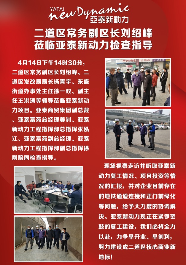 二道区常务副区长刘绍峰莅临亚泰新动力检查指导