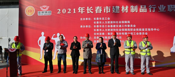 2021年10月27日,由长春市总工会、长春市人力资源和社会保障局主办,长春市建设交通工会、吉林亚泰(集团)股份有限公司工会承办的2021年长春市建材制品行业职工技能大赛决赛在亚泰长春建材园举行。这是该项赛事在此连续举办的第三年。长春市总工会建设交通工会主席才炜伟,市建设交通工会兼职副主席、亚泰集团工会主席李斌,亚泰建材集团副总裁赵凤利和企业班子成员等参加大赛开幕仪式。才炜伟宣布大赛开赛。吉林日报等多家新闻媒体和长春市总工会官方网站、公众号对大赛情况进行了宣传报道。