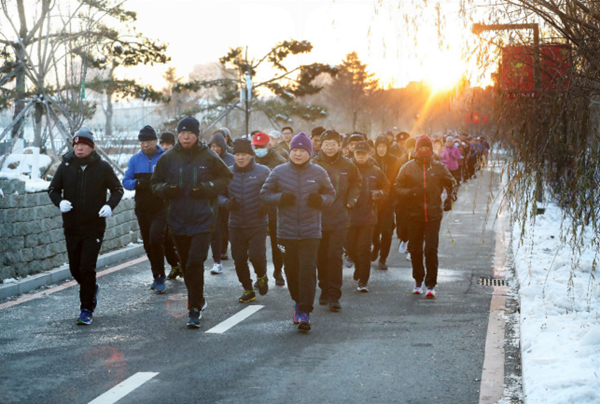 在13日、14日清晨,集团公司在长春参会人员在亚泰体育文化中心进行了体能锻炼。外埠企业参会人员在企业所在地,通过App打卡方式同步进行了体能锻炼。