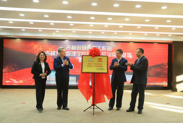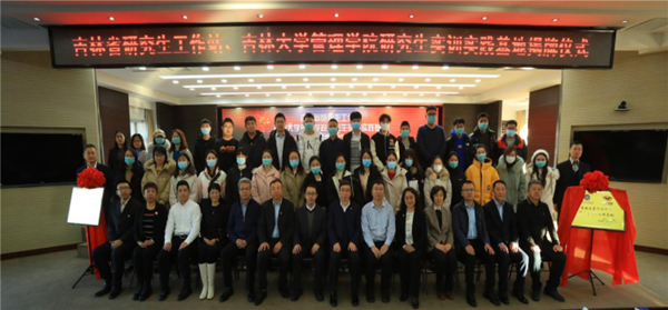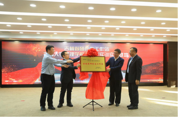 随后,校企双方领导共同为吉林省研究生工作站、吉林大学管理学院研究生实训实践基地揭牌。