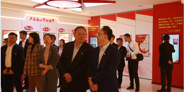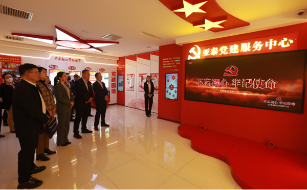 王书记一行首先到亚泰集团党建服务中心参观,了解亚泰集团近些年在经营活动中所取得的主要荣誉、彰显社会责任做出的积极贡献,以及党建工作成果,双方共同观看了亚泰集团党建印记专题片。