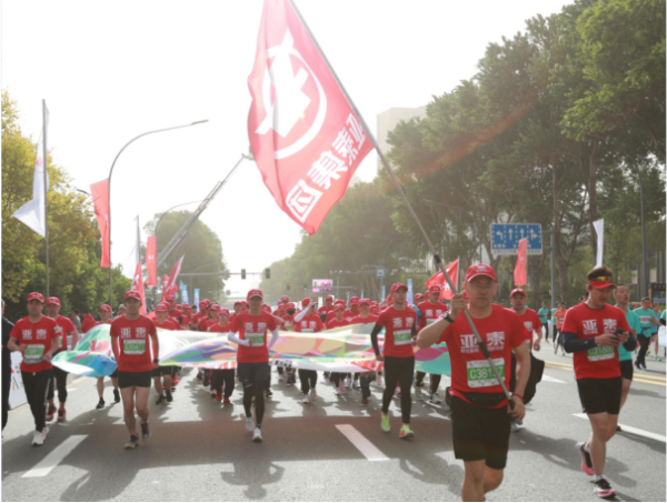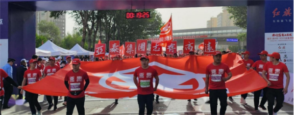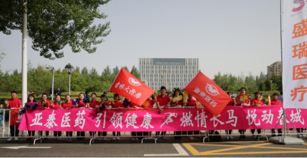 场内亚泰团队脚步铿锵、英姿飒爽,场外,由亚泰建材、亚泰地产、亚泰医药、亚泰电商等各产业企业单位组成的啦啦队、志愿者服务队摇旗呐喊,加油助威,团结奋进之歌响彻赛场。终点一刻,半马和全马选手擎旗奋进,在奔跑中喜看胜利和远方,释放着激情与梦想。“亚泰红”一路招展,遍布在赛道上的亚泰道旗、宣传展板,也渲染着盛会的气氛,所有元素都展现着亚泰集团对马拉松运动的情怀、对“魅力春城”的热爱,以及亚泰人的良好精神风貌。