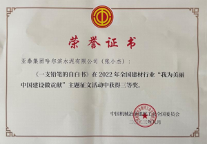 会议通报了“我为美丽中国建设做贡献”主题征文活动结果,并为获奖作者和单位代表颁发了证书。亚泰集团工会选送的2篇征文作品获得大会表彰。其中,亚泰建材辽宁销售公司东立志的《品味低碳之道,自践低碳之行》获征文一等奖,亚泰集团哈尔滨水泥有限公司张小杰的《一支铅笔的自白书》获征文三等奖。东立志作为获奖代表上台接受了大会颁奖。