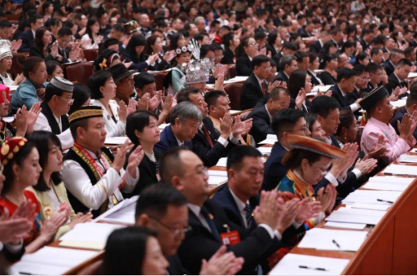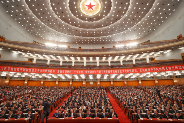 习近平、赵乐际、王沪宁、丁薛祥、李希等党和国家领导人到会祝贺,蔡奇代表党中央发表了题为《奋力书写我国工人阶级投身强国建设民族复兴的壮丽篇章》的致词。