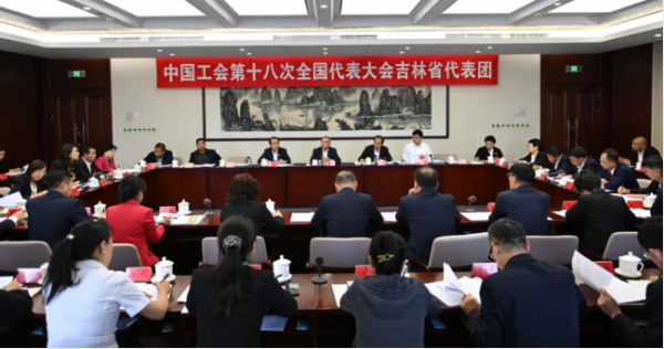 李斌主席在本次大会上和与会代表一道,认真学习讨论了中国工会十八大报告、《中国工会章程(修正案)》,深入思考了工会工作的重大理论和实践问题。李斌主席非常关心产业工人队伍建设改革工作,在代表团讨论时做了发言,提出了意见和建议。他表示,大会主题鲜明、催人奋进。作为东北老工业基地大企业集团的工会主席,在我国迈上全面建设社会主义现代化国家新征程、向第二个百年奋斗目标进军的关键时刻,能够参加中国工人阶级和工会人的盛会,倍感使命光荣、重任在肩。企业工会将以习近平新时代中国特色社会主义思想为指导,坚决贯彻习近平总书记关于工人阶级和工会工作的重要论述,全面落实中国工会十八大确定的各项目标任务,紧紧围绕服务员工生产生活、成长成才需求,持续深化产业工人队伍建设改革,积极构建和谐劳动关系,不断提升工会组织的引领力、组织力、服务力,团结动员广大员工踔厉奋发、砥砺前行,为建设现代化新吉林作出新贡献,为强国建设、民族复兴贡献新力量。