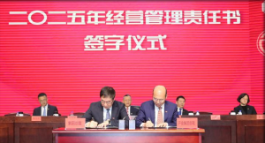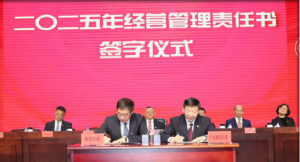 会上,签订了二〇二五年经营管理责任书,集团公司副董事长、总裁刘树森与各产业集团总裁、集团公司副总裁签订了《经营管理责任书》。