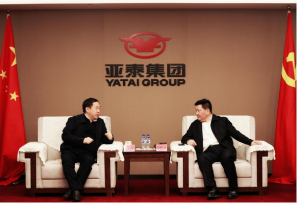 刘乃军书记首先对陈铁志董事长及亚泰集团新任领导班子表示祝贺,并表示在铁志董事长的带领下,市场与股民看到了亚泰集团的发展信心。近年来,为配合中韩示范区的发展,亚泰集团先后为其引入了亚泰制药、亚泰生物、亚泰医药物流等多家企业,为域内经济发展做出了积极贡献,帮助示范区打响了经济名气。希望在未来,亚泰集团能同示范区一道互利互惠,引进更多的企业入驻示范区,以良好的经济增量反哺企业进一步发展。