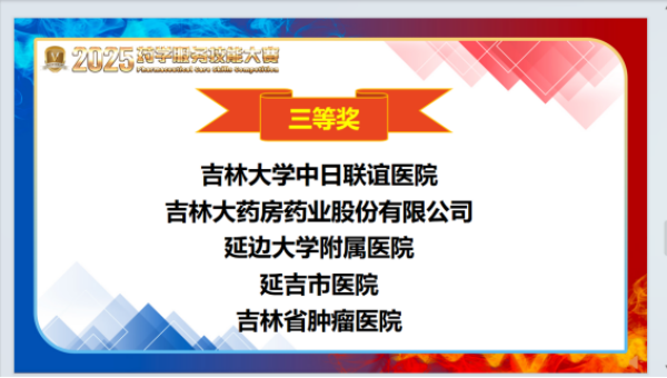 2025年5月11日,由吉林省医学会主办,吉林省药学会基层药学专业委员会承办的“2025年药学服务技能大赛吉林省赛区晋级赛”在长春市落下帷幕,亚泰集团所属企业吉林大药房荣获团队三等奖,成为大赛历史上唯一参加并获奖的医药连锁企业。