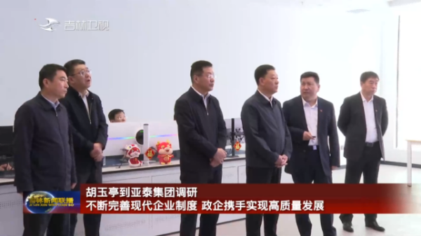 2025年5月20日,吉林省委副书记、省长胡玉亭到亚泰集团调研企业改革发展情况,并召开专题会议。他强调,要深入贯彻习近平总书记在听取吉林省委和省政府工作汇报时的重要讲话精神,进一步全面深化改革,完善现代企业制度,提高企业经营管理水平,强化政企协同、政策赋能,支持企业高质量可持续发展。长春市市长王子联、省政府秘书长刘伟等参加活动。
