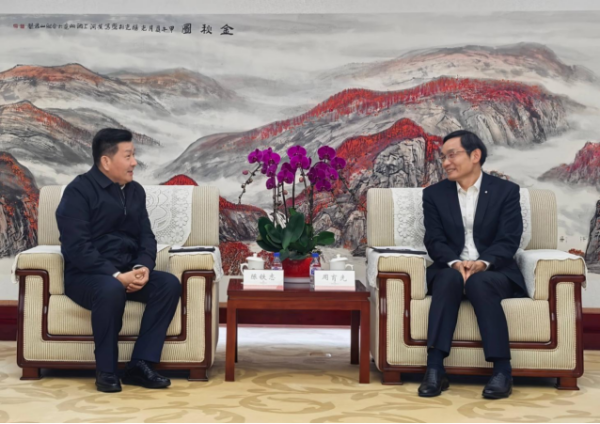 周育先董事长对陈铁志董事长一行的到来表示欢迎,并对共同推进双方建立深度合作予以肯定和展望。他表示,亚泰集团建材行业的发展在东北地区有着很大的影响力,希望双方能够进一步推进全面合作,共同在政企关系建立、行业生态维护等方面贡献力量;双方要深度介入亚泰集团矿山资源的开发和利用,制定以研发、开采、加工以及新能源、新材料的拓展等多领域的系统化解决方案,真正实现“物尽其用”的战略性突破;同时,周育先董事长还邀请亚泰集团到中建材集团的海外拓展企业和项目进行踏查交流,加深相互了解,为下一步共创海外市场发展奠定坚实基础。会见期间,双方还就行业生态维护、产能置换、固废资源综合利用、物流贸易与数字化板块合作等具体合作内容进行了交流。