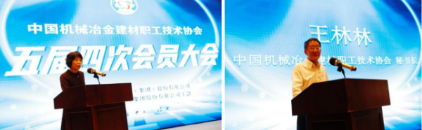 (左:技协执行会长毛迎春作大会报告 右:技协轮值会长张辉宣读通报)