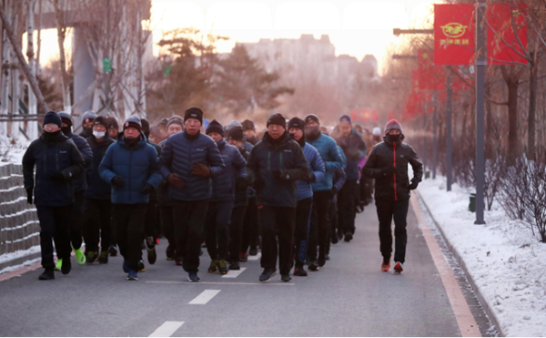 在18日、19日清晨,集团公司在长参会人员在亚泰体育文化中心进行了体能锻炼。外埠企业参会人员在企业所在地,通过 App 打卡方式同步进行了体能锻炼。