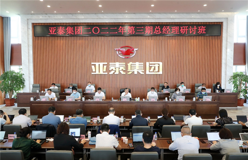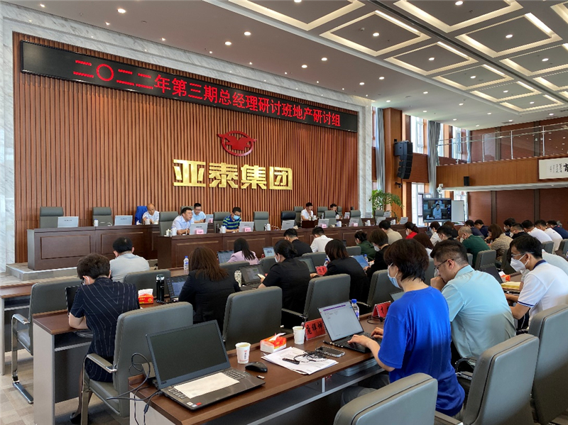 2022年6月18日-19日,按集团公司工作安排,举办了二〇二二年第三期总经理研讨班。这是自本年度3月份以来,受新冠肺炎疫情影响,暂停3个月后举办的首期总经理研讨班。本期研讨班采取集中和分组、现场和视频相结合的方式进行。各组分别在亚泰体育文化中心和亚泰创新中心各会议室进行研讨。外埠企业视频参加会议。集团公司董事长宋尚龙、总裁刘树森、监事会主席陈继忠、党委书记张凤瑛等高级管理人员出席本期研讨班,各产业集团经营班子成员,企业总经理、主管营销工作副总经理和集团部门全体管理人员参加研讨。