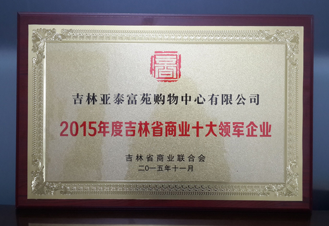 大会通过投票及初审、复审,最终由专家评审委员会确定,亚泰富苑荣获“2015年度吉林省商业十大领军企业”称号。亚泰富苑总经理姜钊、副总经理李国维分别荣获“2015年度吉林省商业优秀经营管理者”称号。