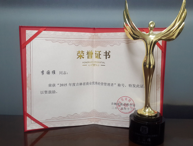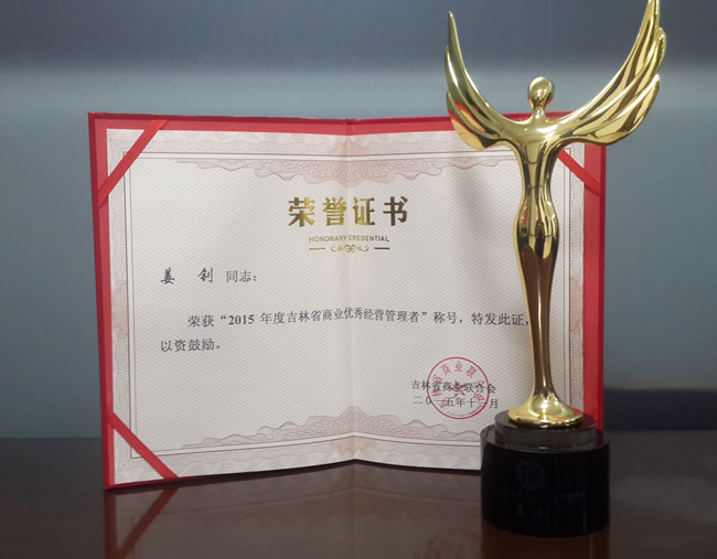 2015年11月28日,吉林省商业联合会第四次会员代表大会暨“2015年吉林省商业十大领军企业”、“2015年吉林省商业优秀经营管理者”、“2015年吉林省商业优秀职业经理人”、“2015年吉林省商业优秀供应商(拓展商)”表彰大会在长春拉图摩根大酒店国际厅隆重举行。