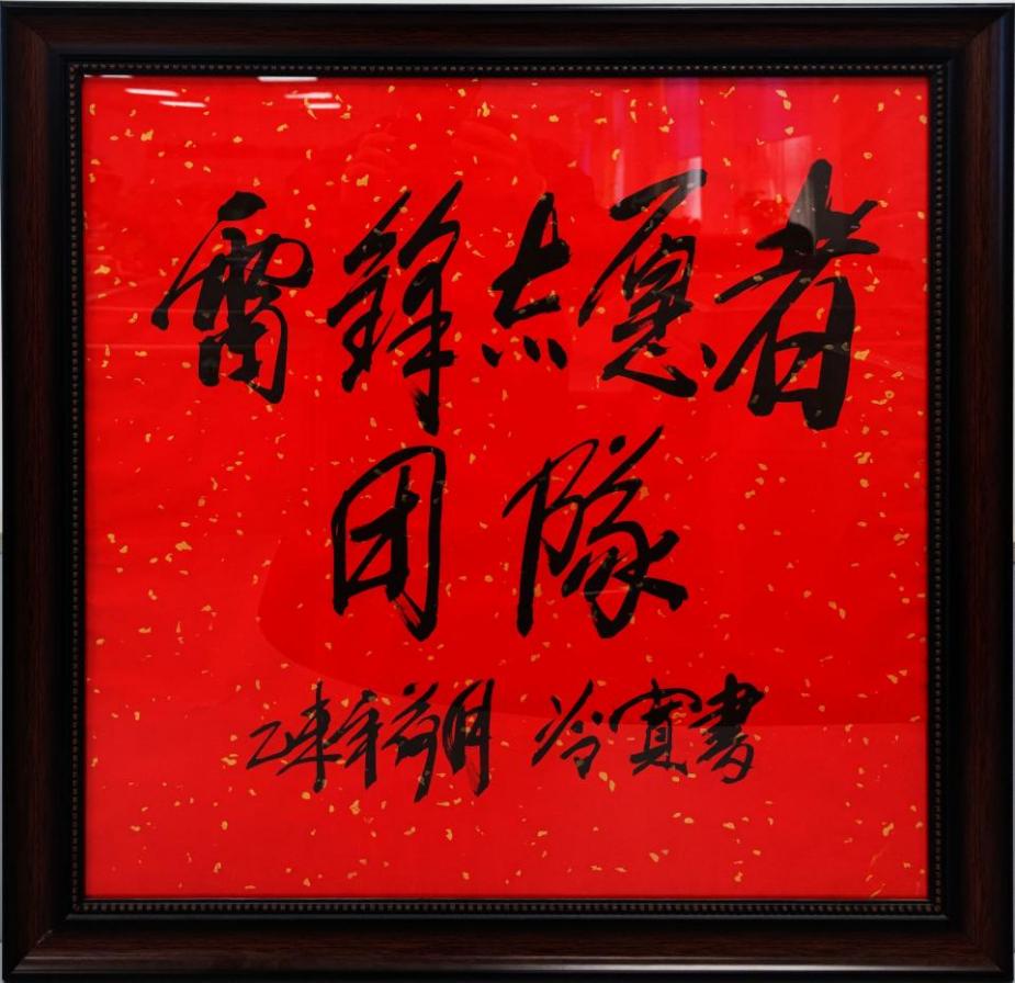 冷宽将军(雷锋生前战友)为吉林大药房“雷锋志愿者团队”题词