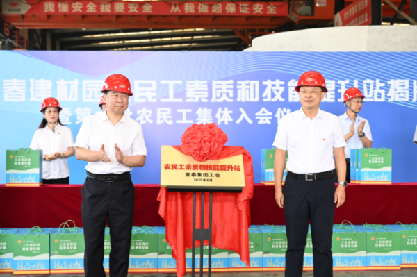 2025年8月19日上午9时30分,亚泰集团长春建材园农民工素质和技能提升站正式揭牌启用。吉林省总工会副主席、党组成员孙在旗,吉林省建设建材工会主席康华受邀出席揭牌仪式,孙在旗副主席代表省总讲话。亚泰集团党委副书记、工会主席李斌,亚泰地产集团副总裁贾旭平与省总工会、省产业工会一同为提升站揭牌,为农民工友发放“送清凉”慰问品,并见证了企业第六批农民工集体入会。来自亚泰长春建材园生产线的100名工友参加活动。该活动还得到了《工人日报》《吉林日报》《中国吉林网》等多家媒体的关注。