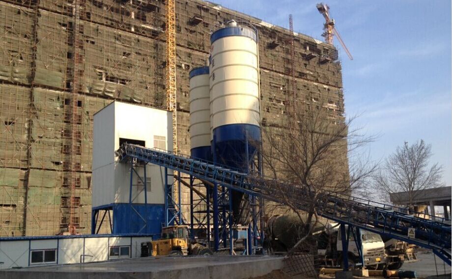为保证工程质量及工期,甲方指定国文医院必须使用亚泰商混。公司领导考虑从长春及伊通长途运输,运输费用成本增高,且混凝土长距离运输及时性不能完全保证,双方协商在施工园区内建立商混现场搅拌站。在一切条件具备的前提下,商混站历时23天建站完成。商混站占地面积900m2,规模为180站,日产量2000m3,全年累计总产量130000m3。