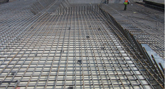 在本工程钢筋施工中,项目部严格按照规范要求对钢筋的进场验收、制作加工、安装绑扎。更加规范了试验送检制度。钢筋进场需建设单位、监理单位、施工单位人员到场进行钢筋型号、直径、等级、数量、出厂合格证的检查,三方签字后进行现场取样并送至实验室后方可卸车。技术人员检查钢筋工的下料单后方可制作。钢筋梁板下层钢筋绑扎:用墨斗在梁板底模板上弹设钢筋位置控制线,按钢筋位置控制线放置钢筋;钢筋梁板上层钢筋绑扎:用小白线挂在梁上作为钢筋放置控制线。浇筑砼时用跳板铺设人行通道,避免工人踩踏钢筋。