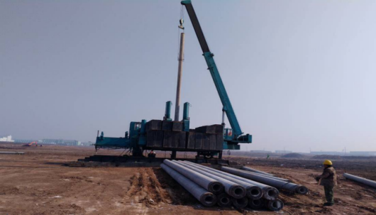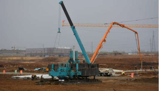 11、4月20日,现场A区桩基础施工完成,降水井降水施工中;现场B区B05、06、07厂房场地平整完成,B06基础压桩打桩施工进行中。