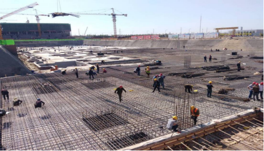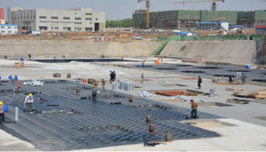 16、5月中旬,现场地下室底板防水、钢筋绑扎施工中。