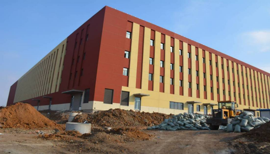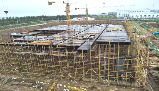 25、6月下旬,现场E区高架库脚手架加固完成,进行高架库主体施工,平层库一层内墙砌筑完成,外墙抹灰施工完成。