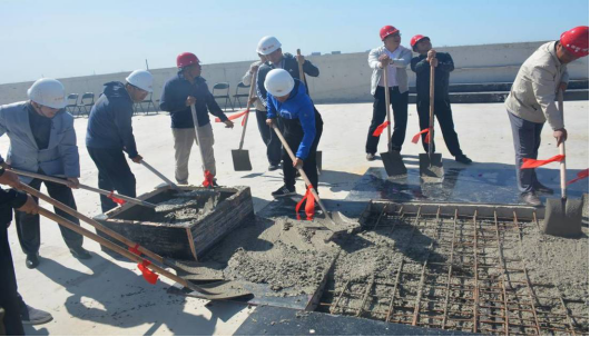 38、8月份,现场新建工程A01主楼举办封顶仪式。