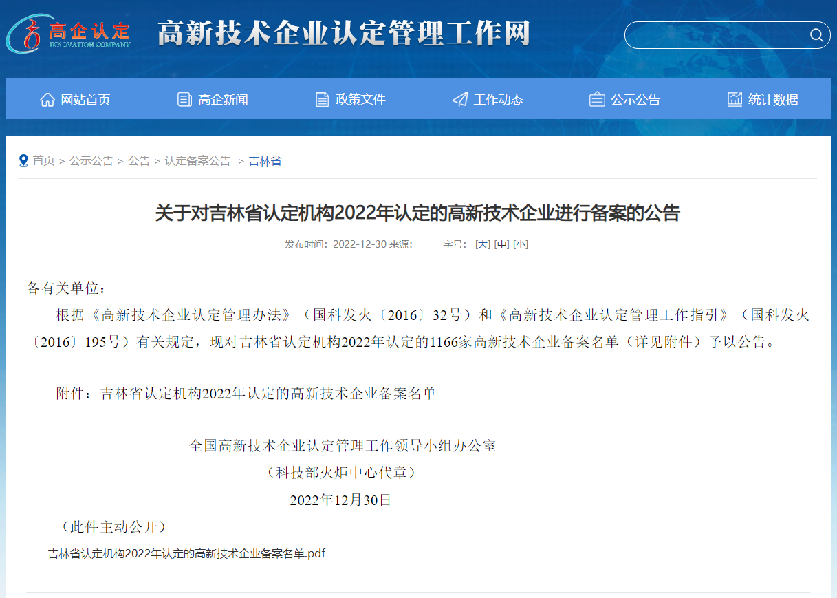 据全国高新技术企业认定管理工作领导小组办公室此前公布的“关于对吉林省认定机构2022年认定的高新技术企业进行备案的公告”显示,吉林亚泰建筑工程有限公司(以下简称“亚泰建筑”)已成功被认定为国家高新技术企业。亚泰建筑,作为吉林省老牌建筑公司,已有42年的发展历史。近年来,通过自身不断努力,在科技创新的道路上不断突破,逐步向智能化、绿色化方向发展,科技创新硕果累累。