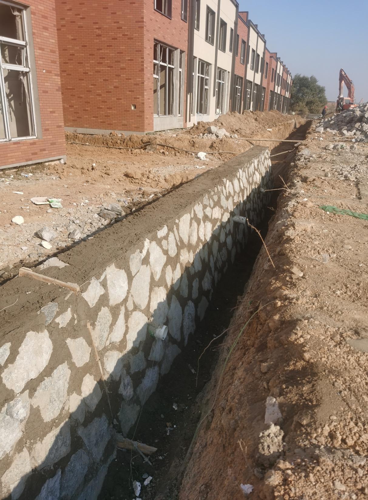 施工中,项目部构建 “三维管控” 体系:时间上倒排计划,细化每日节点,预留冬季施工缓冲期;空间上科学划分功能区域,保障场地有序;资源上配齐 30 余台专业设备、储备优质抗冻材料,组建经验丰富的冬季施工专业团队,确保人财物精准匹配。雨污水施工作为开篇关键,项目部采用“分层开挖、防冻防护、精准铺设、严格检测”策略,遵循七步标准流程,45 天内完成主管网施工,为后续工序扫清障碍。