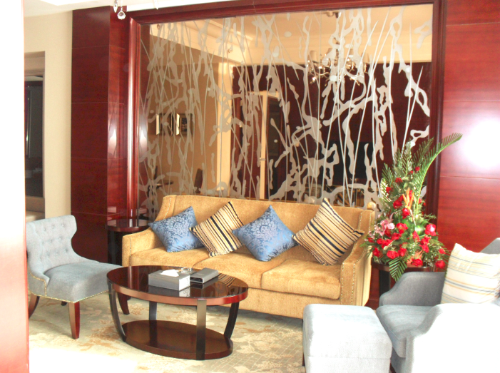 元。项目全部选用高档材料,主要采用浅啡网纹理石及麦哥利固装板等材料,使用科勒高档洁具,结合室内装饰及家具布置,尽显豪华典雅,融内蒙草原风情和现代设计风格为一体,别俱一格。该项目同时获得长春市“君子兰”杯优质工程奖和“长白山”杯吉林建筑工程装饰奖。