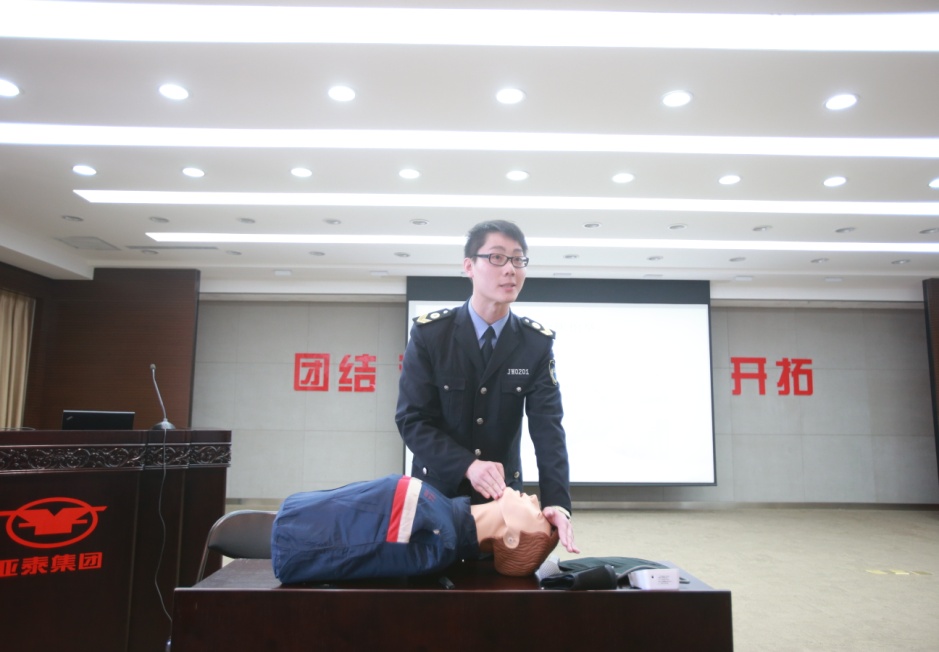 朱亚杰主任带来了CPR假人,演示了CPR(心肺复苏术)的现场紧急救护方法,特别指出了日常急救的误区,强调了专业救护的必要性和安全性,为突发事件的“黄金4分钟”做以专业讲解。