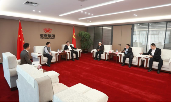 陈铁志董事长对邓建涛总经理一行的到来表示欢迎和感谢。他表示,亚泰集团十分欢迎南水北调铁建新能源公司就新能源产业投资进行商洽。亚泰集团有着天然的本土企业优势和自身资源优势,有着新能源产业发展和投资的空间价值。双方要广开思路,共同研究预期市场。一是亚泰集团提供产业优势资源,发挥矿山、厂区、建筑物屋顶、产业园区停车场等空间资源,为新能源产业降低成本;二是以亚泰集团建材产业新能源消耗为核心,联合长春市域内数据中心、室内滑雪场、冷链物流等高耗能项目,聚焦能源消耗新指标,以聚合方式,发挥新能源运营过程中的成本优势,打开本土新能源消纳市场;三是共同研究在新能源充电桩、充换电新能源重卡、矿山及产业园区储能项目,全面开展合作,进一步释放矿山闲置资源,围绕低碳园区、绿色矿山发挥新能源产业优势。