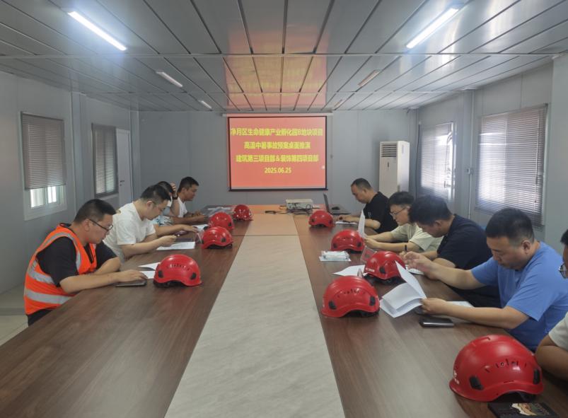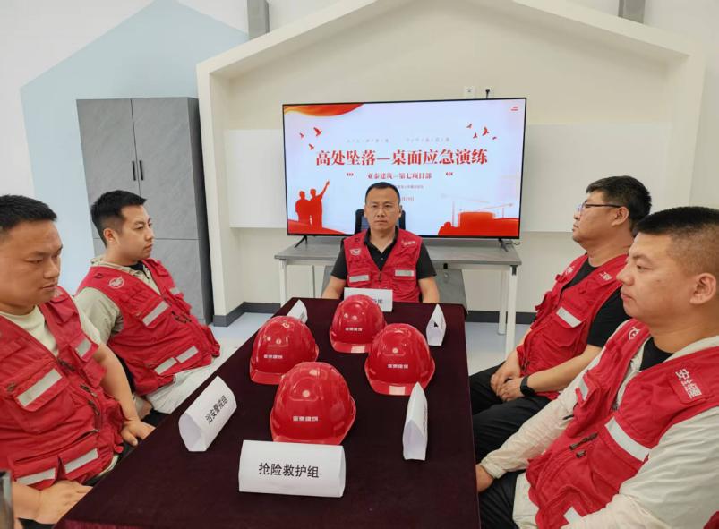 育泽小学项目、生命健康产业孵化园项目,创新采用桌面推演形式,围绕高空坠落、高温中暑等场景,通过案例分析、情景模拟、分组研讨,深入剖析应急处置要点,强化团队风险预判与科学决策能力。