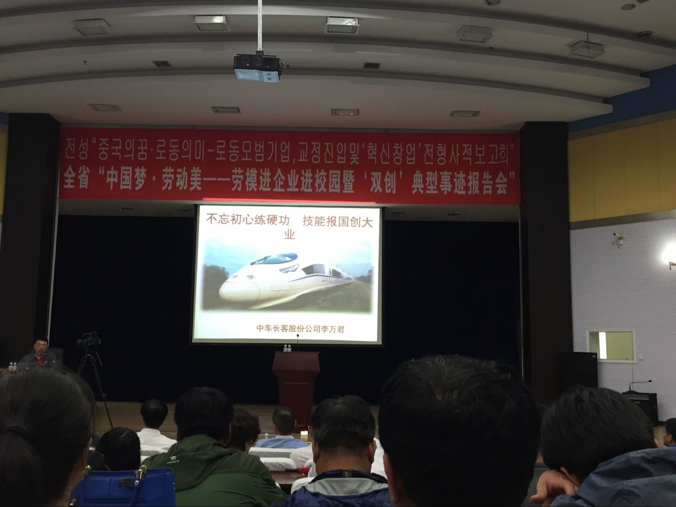 报告会由吉林省委宣传部、总工会组织召开,旨在培育和践行社会主义核心价值观,弘扬“劳动创造美好生活”的时代主旋律,推进吉林省“双创”活动深入开展,引导广大职工积极投身全面改革开放的火热实践。报告会上董研,杨利民,管延丽,李万君,常赉,刘海涛共6位劳动模范将发生在自己身上的创业创新故事和内心感想讲述给来自全州各企事业单位参会人员。