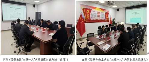 会议第一项议程,组织学习《亚泰集团“三重一大”决策制度实施办法(试行)》,随后正式公布并全面宣贯《亚泰永安堂药业 “三重一大” 决策制度实施细则》。会议明确,“三重一大” 决策制度是企业规范运营、防范风险的核心制度,细则对重大决策、重要人事任免、重大项目安排和大额度资金运作的决策范围、决策程序、责任追究等内容进行了详细明确,为企业科学决策、民主决策、依法决策提供了坚实制度遵循。宣贯过程中,企业党组织负责人结合实际案例,对细则重点条款进行解读,要求全体参会人员深入学习领会,严格执行决策流程,杜绝违规决策、随意决策,切实将制度要求融入日常工作,保障企业运营合规有序。