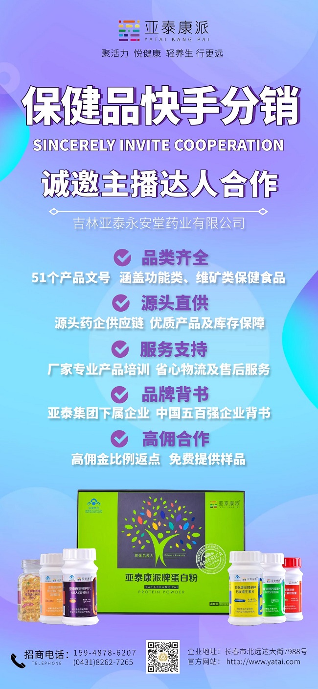 亚泰永安堂药业保健食品直播分销 诚邀主播达人合作
