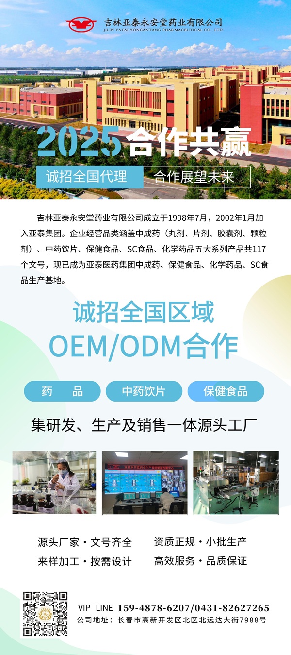 亚泰永安堂药业诚邀全国区域OEM/ODM合作