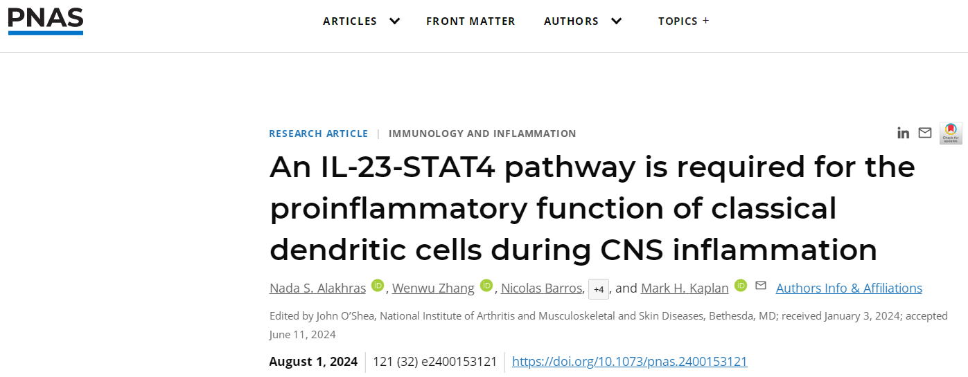 近日,一篇发表在国际杂志Proceedings of the National Academy of Sciences上题为“An IL-23-STAT4 pathway is required for the proinflammatory function of classical dendritic cells during CNS inflammation”的研究报告中,来自印第安纳大学医学院等机构的科学家们通过研究在理解炎症期间细胞之间如何交流沟通方面取得了重大进展,这项研究历时5年,研究人员重点分析了能在炎症期间促使细胞发挥功能的特殊分子,尤其是在发生诸如多发性硬化症等疾病的中枢神经系统中。