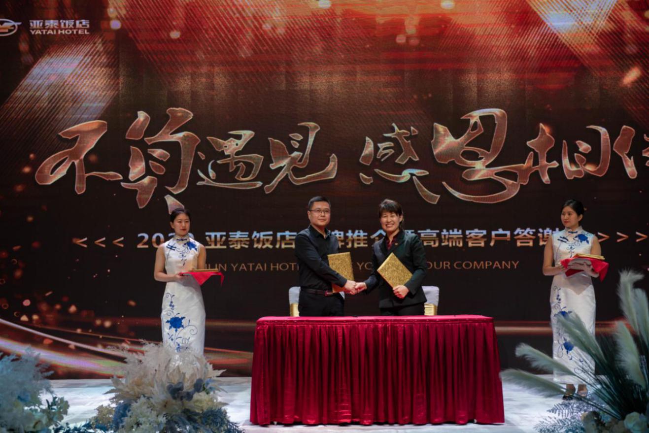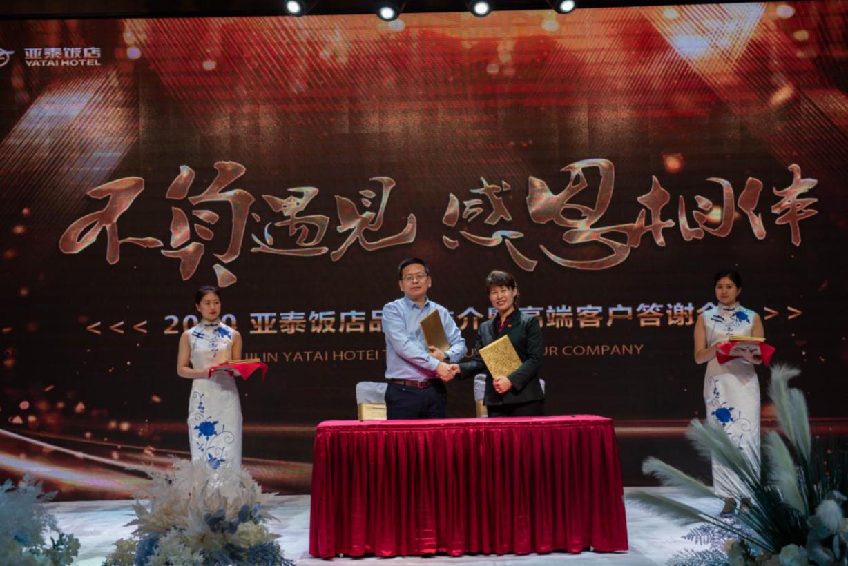 现场,姜总与三家大客户代表签订了2021年合作协议,在感谢大客户多年来对亚泰饭店的认可和选择的同时,更有着一路携手奋斗、共创未来美好愿景。