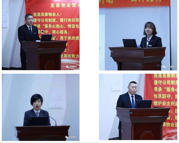 20181024日“明日之星”公开竞聘大会在公司四楼会议室举行,参选人员以PPT形式进行精彩的演讲答辩,充分发挥各自岗位的特长,详细描述对工作的感受并大胆设想未来工作的开展形式,亚泰地产物业公司总经理安晓东及各中级管理人员组成评委小组,对竞聘人员进行全面的测评与考核,竞聘演讲之后评委小组与竞聘人员进行深度交流与沟通,并逐一提出提升建议。