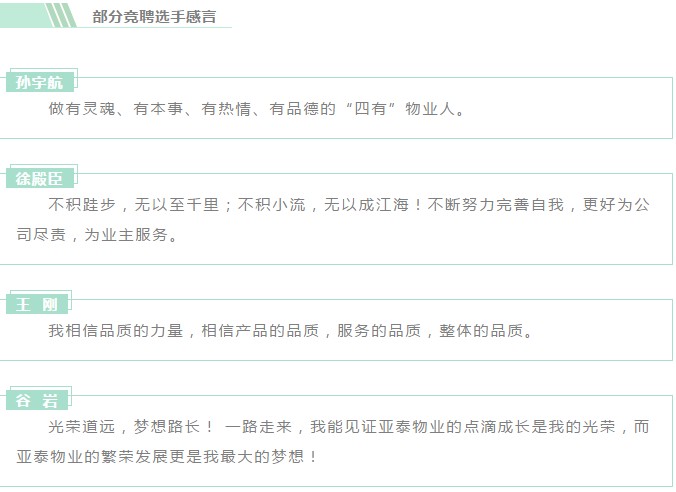 百舸争流千帆竞 ,借海扬帆奋者先。亚泰物业将努力熔炼更强的精英团队,继续秉承“服务心贴心,情谊长久远”的服务理念,为您打造舒适宜居的和美家园,助力您对美好生活的向往,实现“乐居亚泰,为爱升级,让家升值”的服务目标。