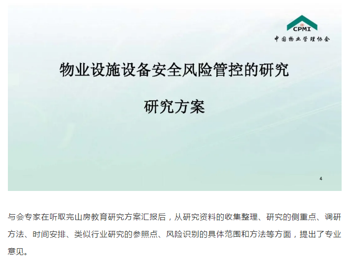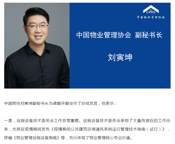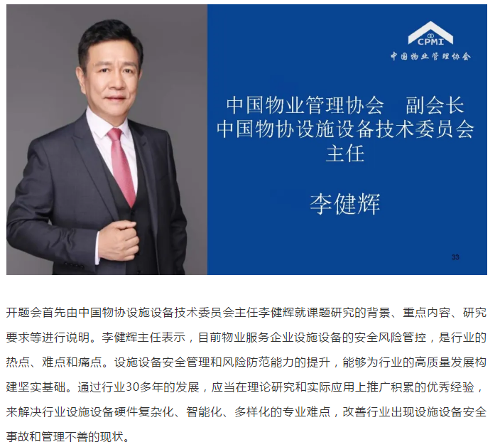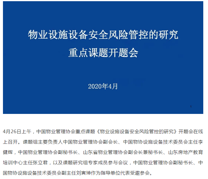 中国物协重点课题《物业设施设备安全风险管控的研究》开题会在线上召开