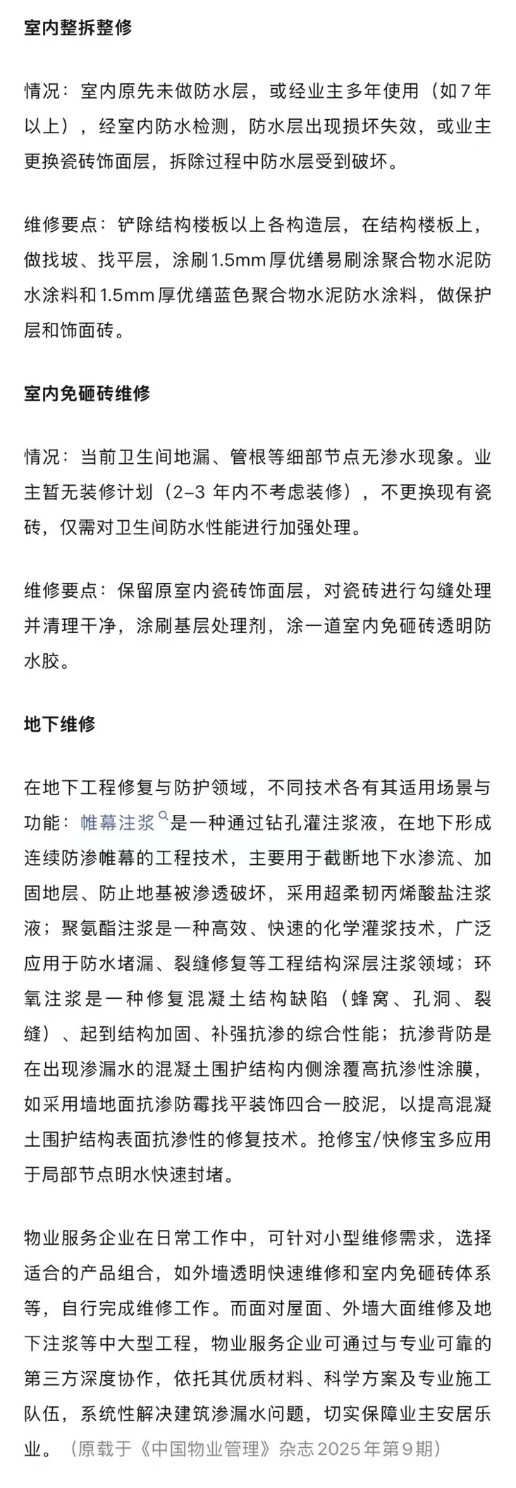 建筑物渗漏的四大机理与维修要点