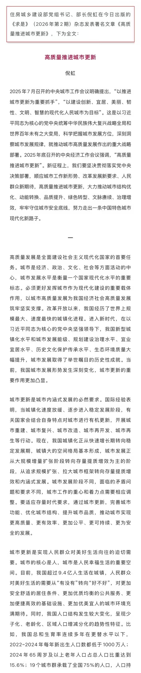 《求是》杂志发表倪虹署名文章:高质量推进城市更新