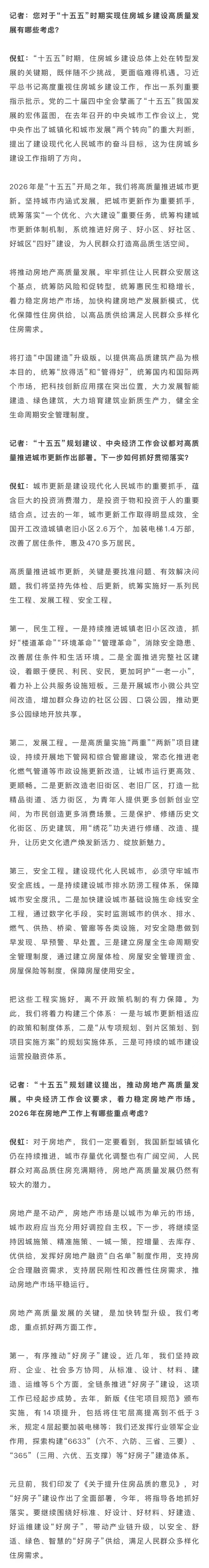 央视《朝闻天下》 | 专访住房城乡建设部部长倪虹——权威访谈·开局“十五五”