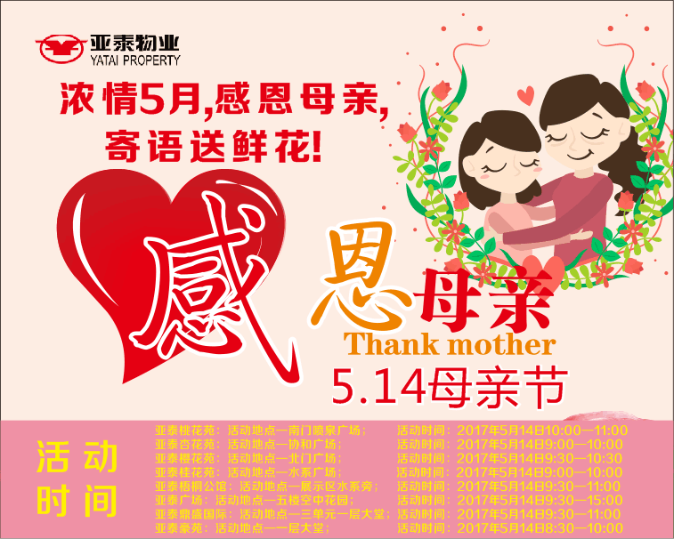 亚泰鼎盛国际:活动地点—三单元一层大堂;活动时间:2017年5月14日9:30—11:00