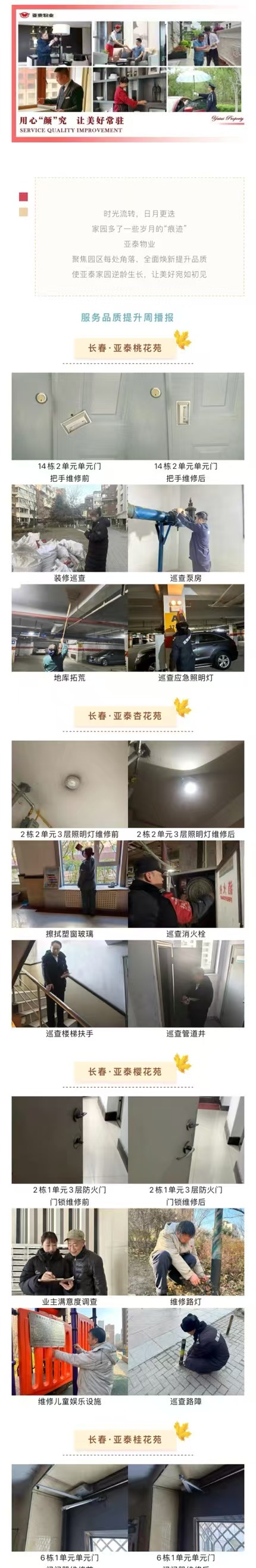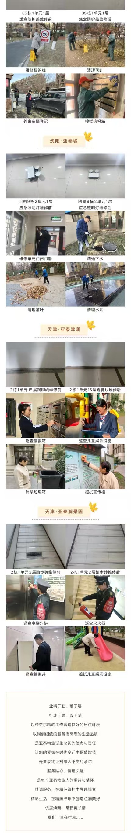 【2025年亚泰物业服务品质提升周播报第四十七期(11月17日-11月23日)】从心出发,我们在行动